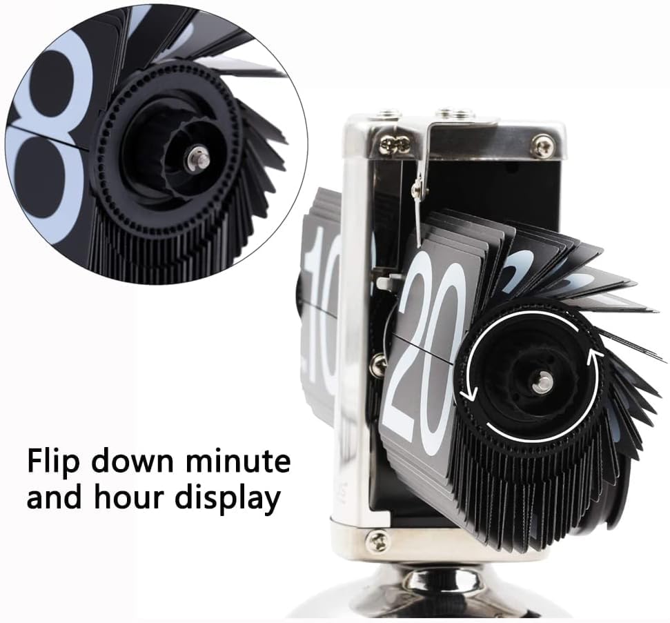 - [Premium Design] - 12 hour AM / PM clock, foldable hour and minute display, easy to read. Adjust via a single knob next to the minute display. High quality quartz movement, keeps time accurately and cannot hear noise. It features painted 304 stainless steel frame and environmental ABS boards, fashionable and durable.